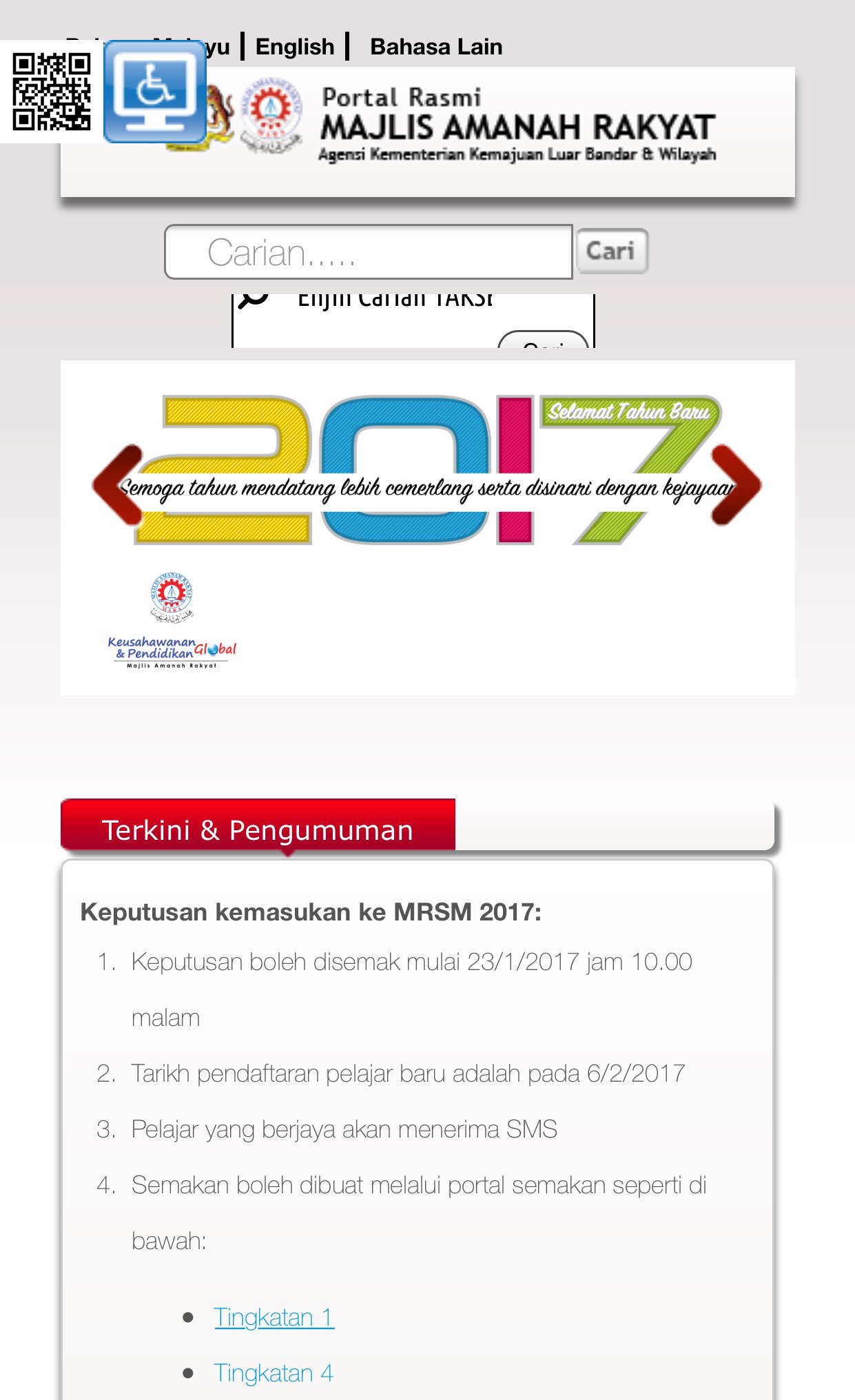 Bernama Semakan Keputusan Kemasukan Mrsm Tingkatan Satu Bermula Hari Ini from web14.bernama.com Semakan keputusan pt3 2017 boleh dibuat secara online atau sms. Untuk membuat semakan anda hanya perlu masukkan angka giliran untuk kemasukan ke tingkatan 1 mrsm dan nombor kad pengenalan untuk semakan kemasukan ke tingkatan 4 mrsm. Dan apabila keputusan kemasukan mrsm keluar, seperti telah diduga. Jangan lupa untuk sertakan surat sokongan (jika ada). Majlis amanah rakyat (mara) melalui maktab rendah sains mara (mrsm) akan menjalani ukkm seperti berikut tahun 2017. #ajl32 | keputusan penuh ajl32. 15 mac 2017 sila ikuti maklumat berikut bagi mengetahui tarikh keputusan dan tawaran mrsm tingkatan 1 dan 4 tahun 2017 bila akan diumumkan serta mrsm kulim merupakan mrsm keempat dibina pada tahun 1977 dan mengambil seramai 149 orang pelajar. Semakan keputusan permohonan kemasukan mrsm 2017.