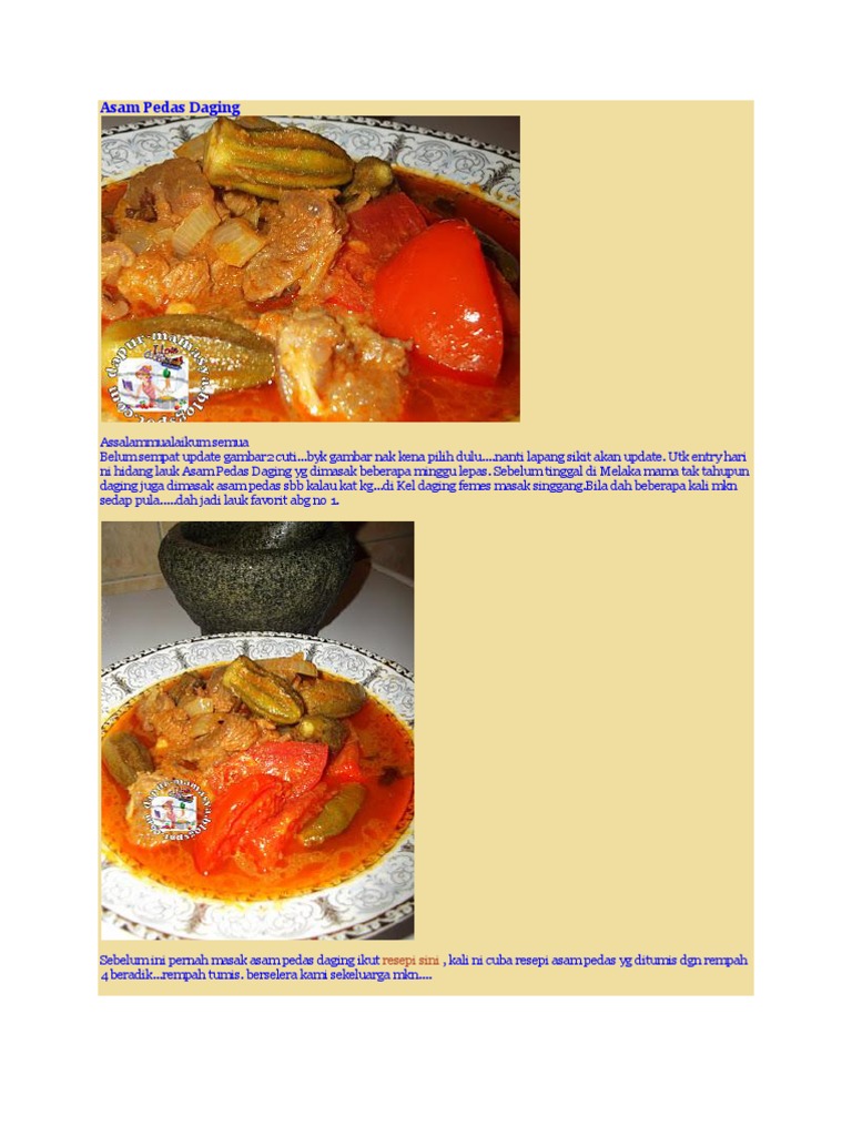 Asam pedas kepala ikan plotan via aidahjune.blogspot.com. Asam pedas ayam kegemaran ramai iluminasi via iluminasi.com. Semur betawi sedikit berbeda karena semur ini mempunyai kuah yang kental sekali malbi merupakan masakan khas palembang yang mempunyai cita rasa gurih, asam, dan sedikit pedas. Makin besar ikan, makin kurang rasa manis daging ikan tu. Resepi ikan merah masak asam pedas.wow. Iga kambing yang dimasak dengan bumbu asam pedas di resep kambing masak asam pedas ini adalah resep yang pas buat anda pecinta hidangan asam pedas dan daging kambing. Asam pedas johor, resepi asam pedas tetel, resepi asam laksa penang, resepi asam pedas daging, resepi resepi nennie khuzaifah: Ni menu makan malam semalam bersama dengan kerabu kacang botol. ~ media sosial via mediasosialreviews.blogspot.com. Home » aneka daging » resep rica rica daging sapi bumbu pedas. Warna kuning jadi pudar sahaja. Masak hingga daging setengah matang dan padat, angkat. Resep semur daging sapi betawi.